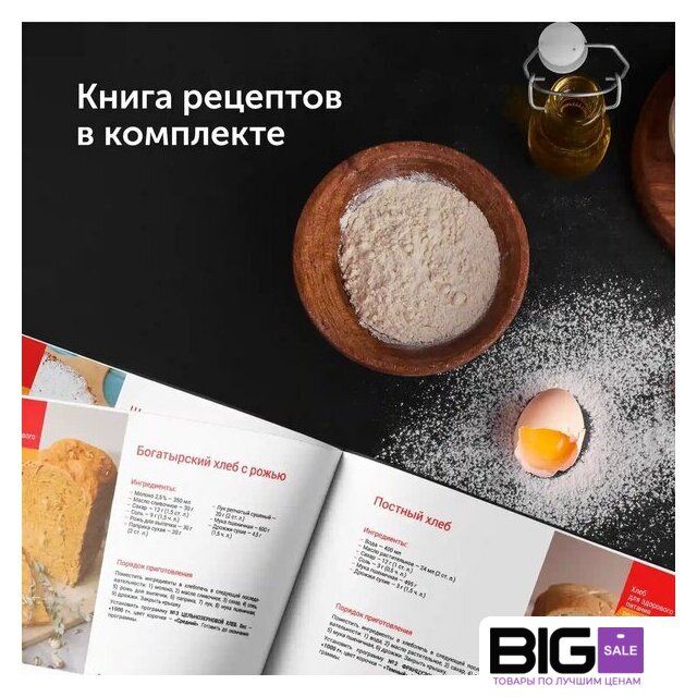| Комплектация | хлебопечьформа для выпечкимерный стаканмерная ложкалопасть для замешивания теста (2 шт.)крючок для извлечения лопасти для замешиваниякнига рецептовсервисная книжкаруководство по эксплуатации |