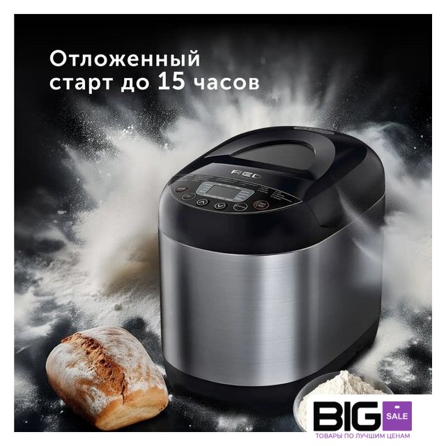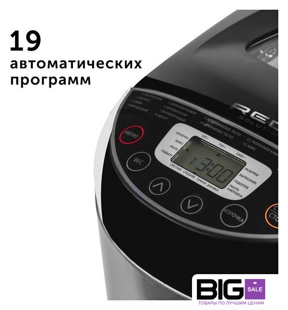 | Перечень режимов работы | Классический хлебЭкспрессСдобаФранцузский хлебЦельнозерновой хлебБородинский хлебБезглютеновый хлебДесертБездрожжевое тестоДрожжевое тестоМолочная кашаКексДжемЙогуртВыпечкаСупТушениеХлеб с добавкамиРжаной хлеб |