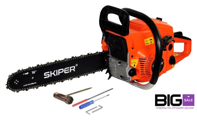 Комплект поставки | 1. Бензопила - 1 шт2. Направляющая шина цепи - 1 шт3. Режущая цепь - 1 шт4. Набор инструментов: cвечной ключ, отвертка, напильник для заточки цепи - 1 шт., шестигранный ключ - 2 шт.5. Емкость для приготовления топливной смеси - 1 шт6. Руководство по эксплуатации - 1 шт7. Гарантийный талон – 1 шт |