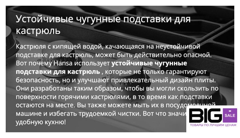 | Чугунные конфорки | нет |