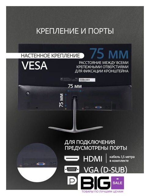 | Крепление VESA | 75х75 |
