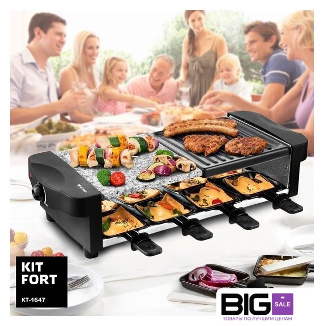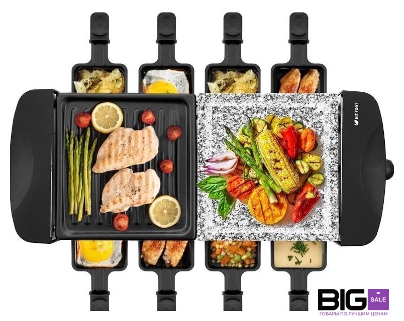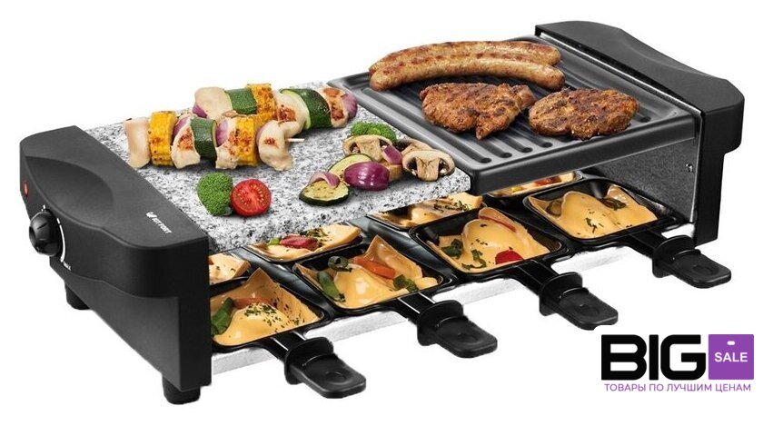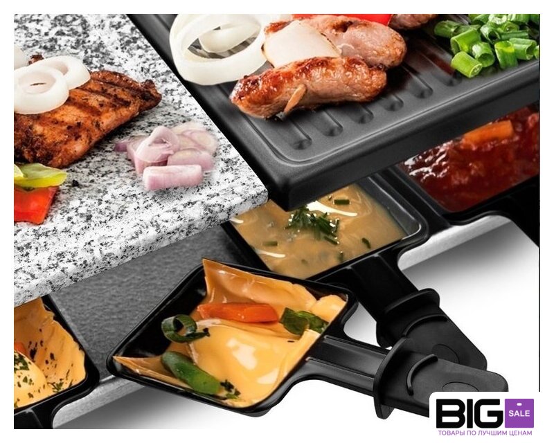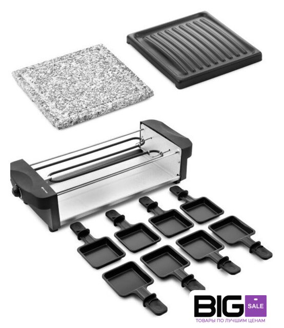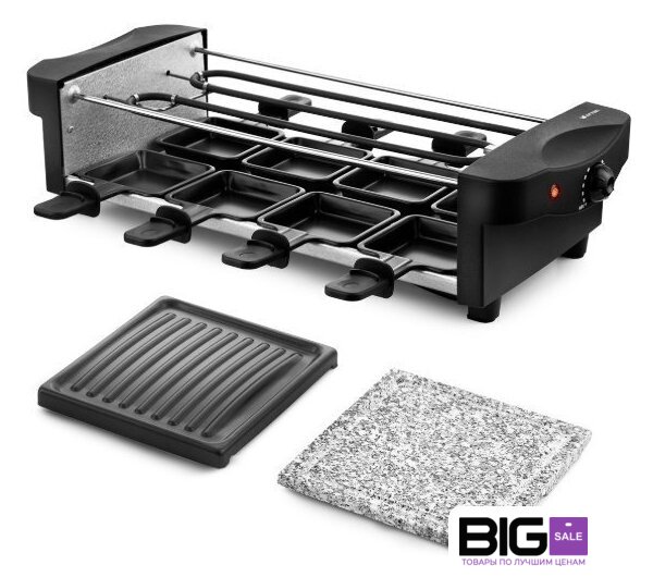 | Комплектация | Раклетница - 1 штКаменная плита - 1 штПанель с антипригарным покрытием - 1 штПорционные сковородки с антипригарным покрытием — 8 шт.Руководство по эксплуатации - 1 штГарантийный талон - 1 шт |