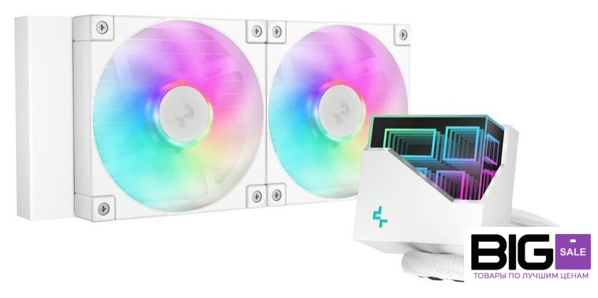 типоразмер 360, макс. шум 38.71 дБ, вентилятор 120 мм, 2400 об/мин, PWM, ARGB подсветка, белый