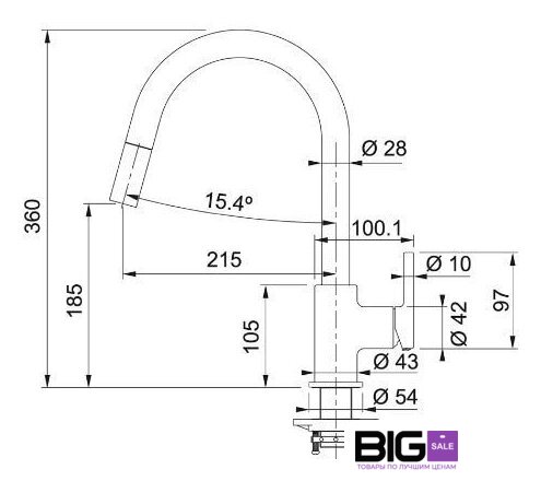 Длина (вылет) излива | 215 мм |