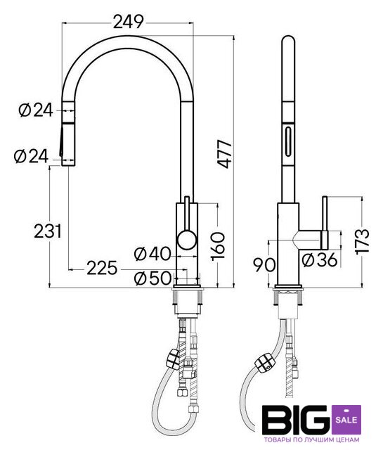 | Выдвижной/гибкий излив | есть |
