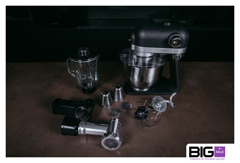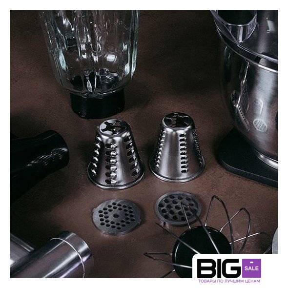 | Функции | мясорубка, блендер, взбивание, смешивание, замешивание дрожжевого теста, терка, шинковка, ломтерезка |