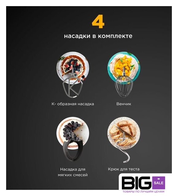 | Функции | взбивание, смешивание, замешивание дрожжевого теста |