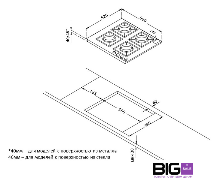 Овальные/прямоугольные конфорки | нет |