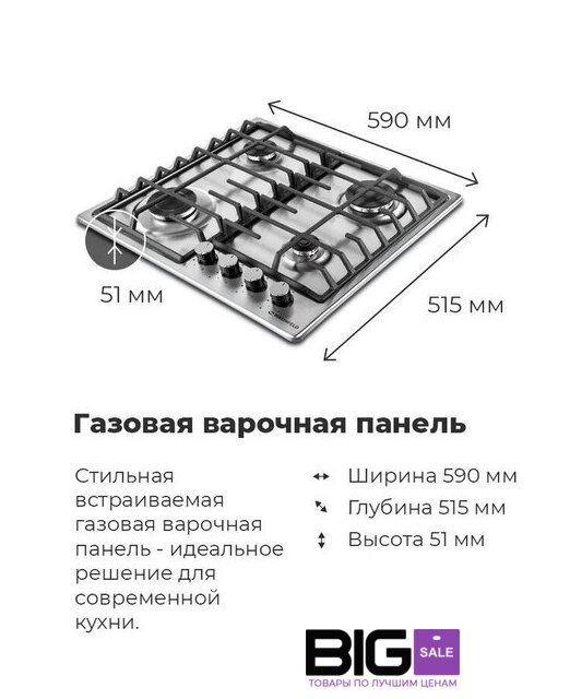 | Количество конфорок | 4 |