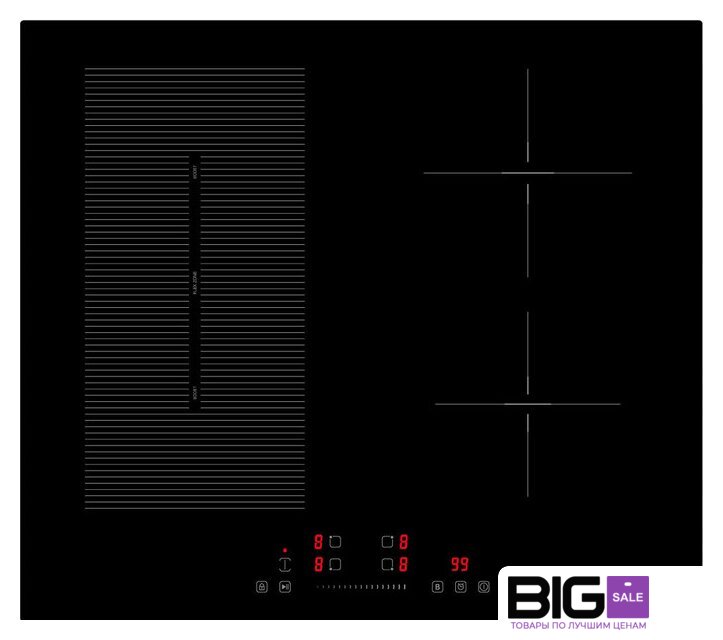 | Подробная информация о конфорках | левая передняя конфорка 180мм, 1800Вт/бустер 2200Вт --- левая задняя конфорка 180мм, 1300Вт/бустер 1500 Вт --- правая задняя конфорка 180мм, 1800Вт/бустер 2200 Вт --- правая передняя конфорка 180 мм, 1300Вт/бустер 1500Вт --- флекси зона 180*380мм 3000Вт/ бустер 3600 Вт |