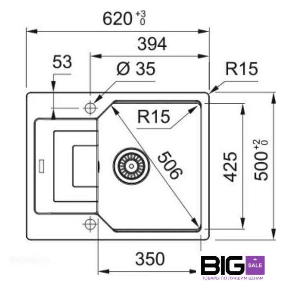 Ширина мойки | 62 см |