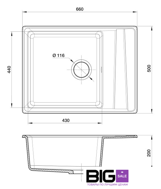 Ширина мойки | 66 см |