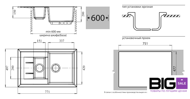 Способ установки | врезная на столешницу |