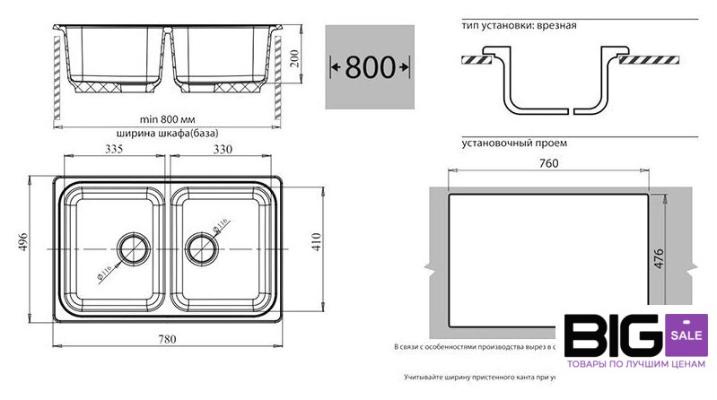 Ширина мойки | 78 см |