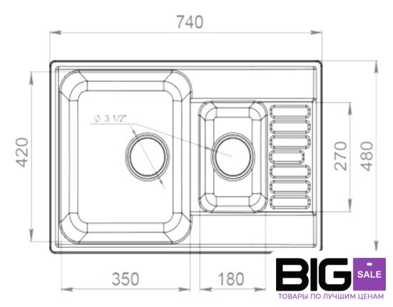 Диаметр сливного отверстия | 3.5" |