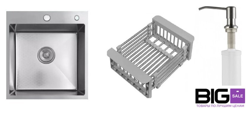 Кухонная мойка Schtoff Best Decor Silver 4550 + коландер KR-1 GREY + дозатор SD-1 SILVER