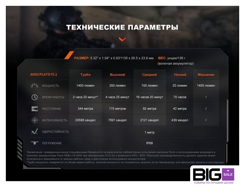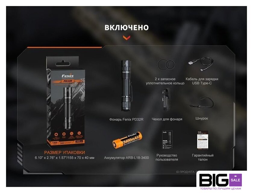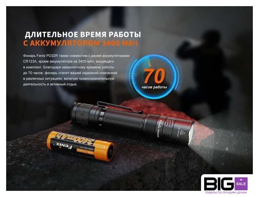 | Типоразмер аккумулятора | 1x18650, 2xCR123A |