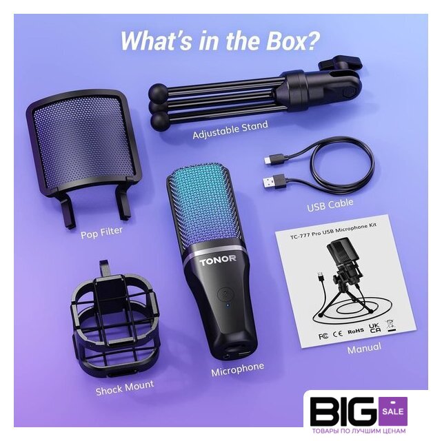 Комплект поставки | - трипод- кабель USB Type-C - USB Type-A- держатель- поп-фильтр- документация |