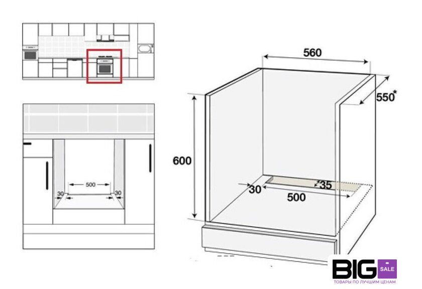 Размеры ниши для встраивания |