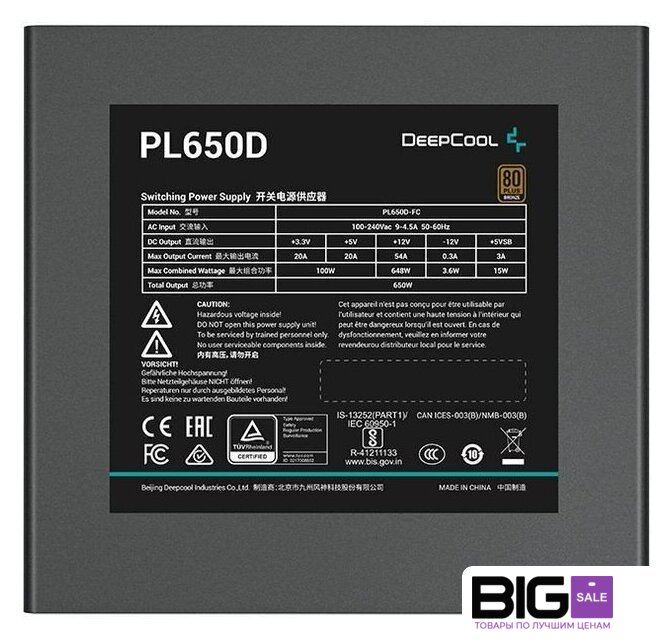 | Сертификат 80 PLUS | бронзовый |