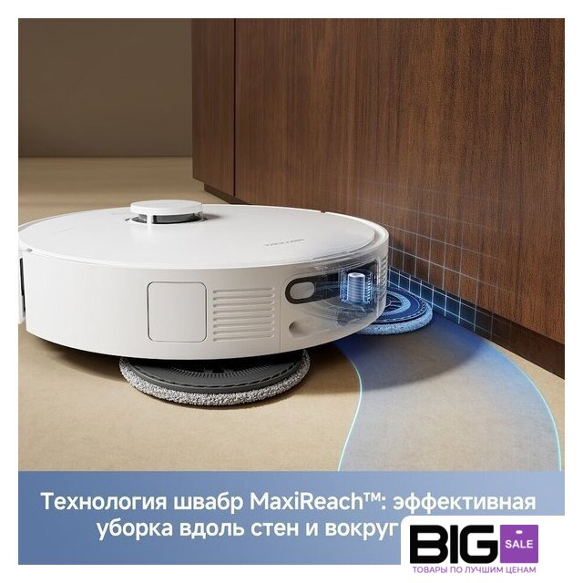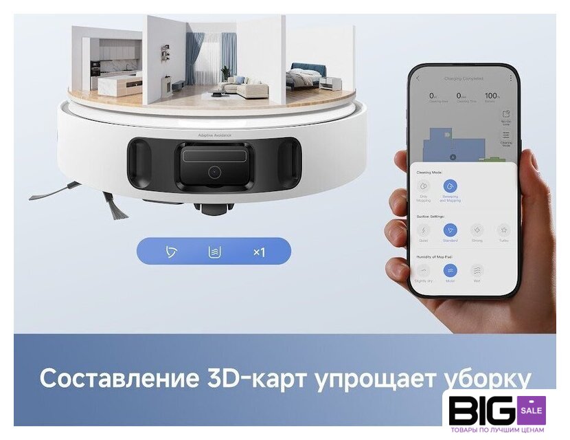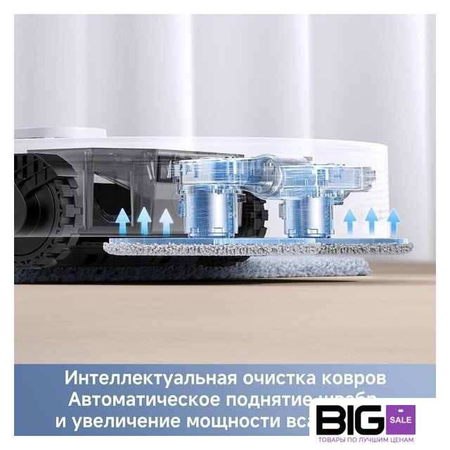 | Функциональные особенности пылесоса | локальная уборка, выбор траектории движения, уборка по расписанию, виртуальная стена в приложении, автовозврат на базу, определение ковров, выдвигающаяся насадка для влажной уборки, подъем тряпки на ковре |