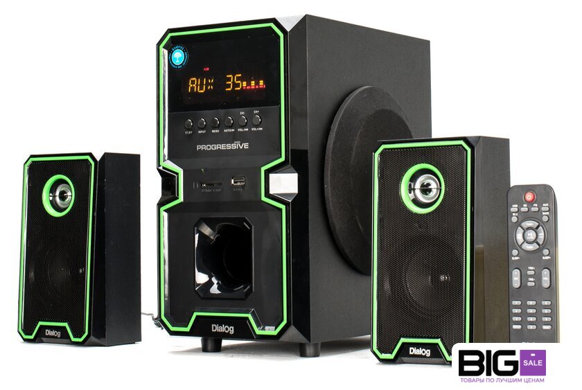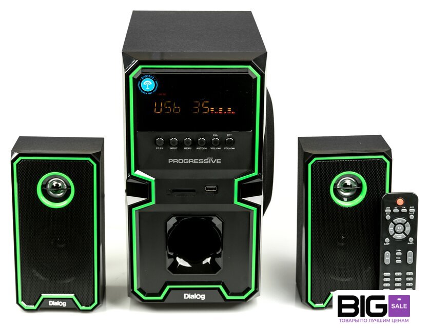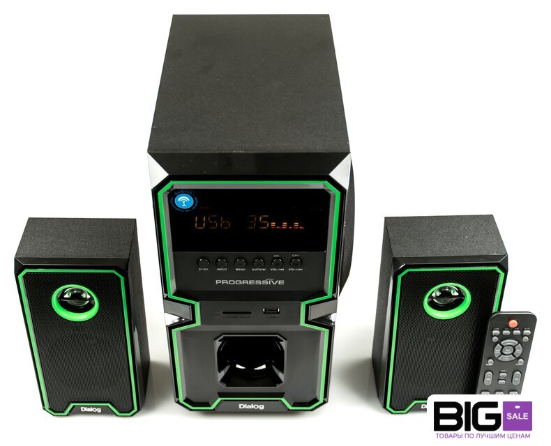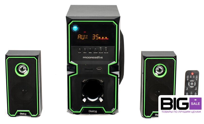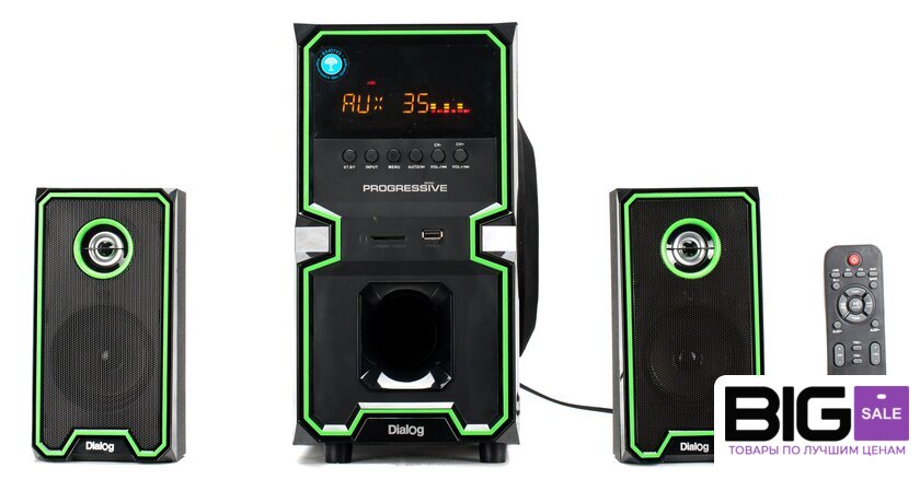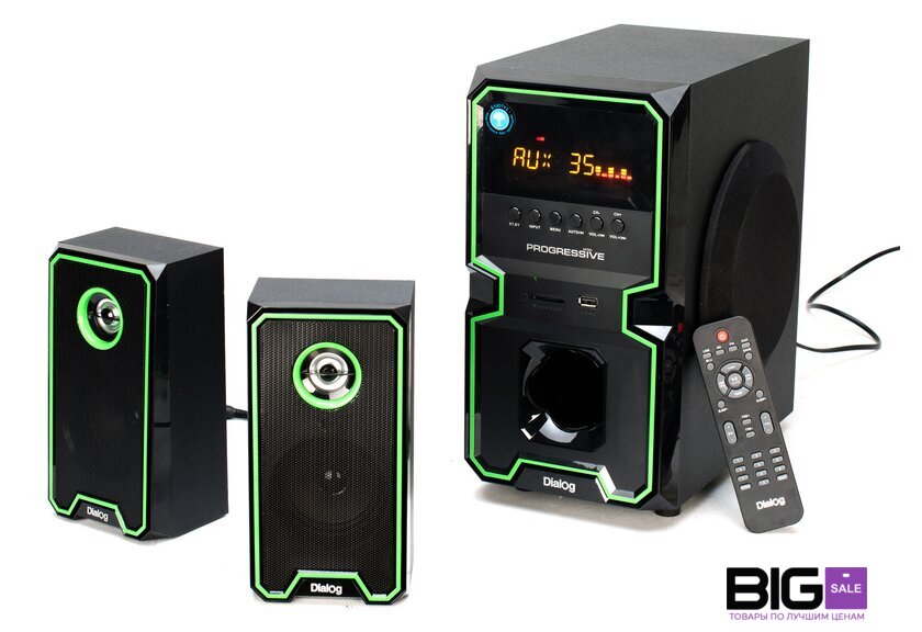 | Комплект поставки | сабвуфер, два сателлита с кабелем для подключения, кабель для подключения к источнику сигнала 2RCA-M->3.5 мм "стерео джек", беспроводной пульт ДУ, батарейки ААА для пульта ДУ - 2 шт, антенный кабель, руководство пользователя, гарантийный тало |