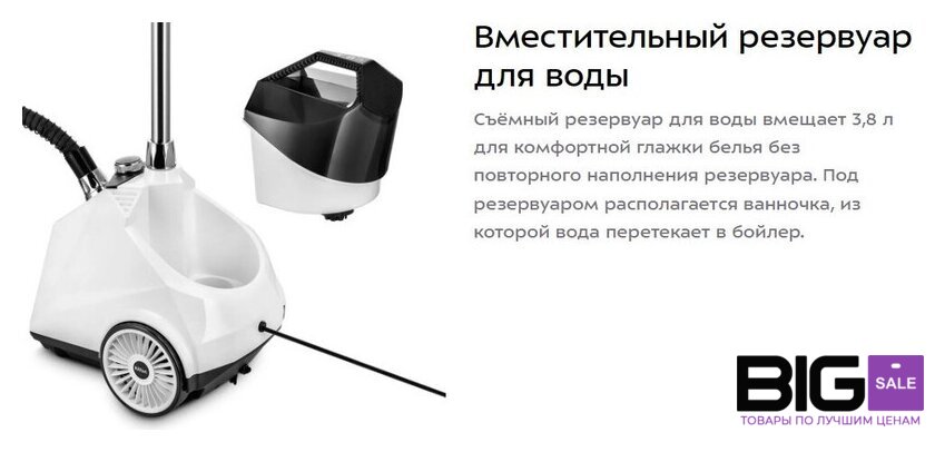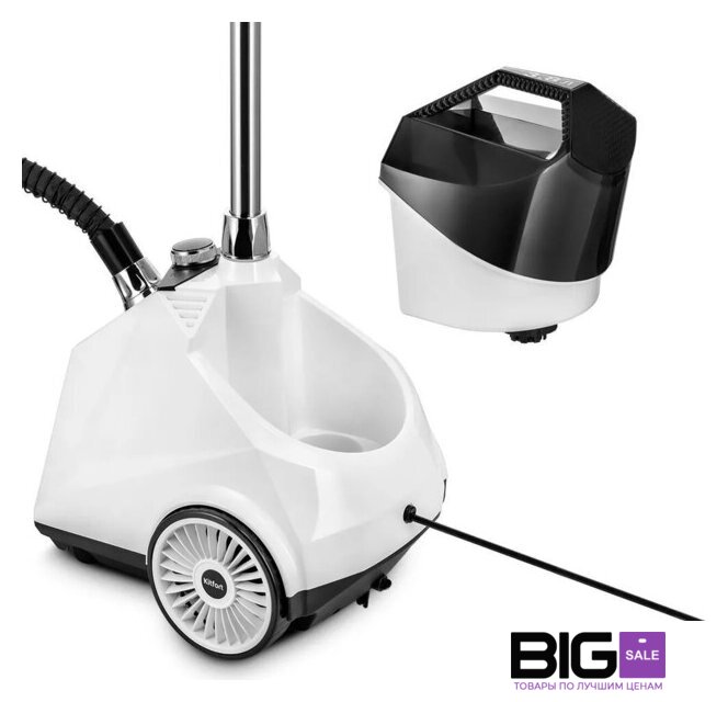 | Дополнительные насадки и приспособления | - отпариватель с заглушкой сливного отверстия- паровой шланг- резервуар для воды с крышкой- телескопическая стойка- гайка телескопической стойки- цанговый зажим- складная вешалка с выдвижным крючком- вешалка для брюк с 2 прищепками- ворсовая щетка-зажим- защитная варежка- руководство по эксплуатации |