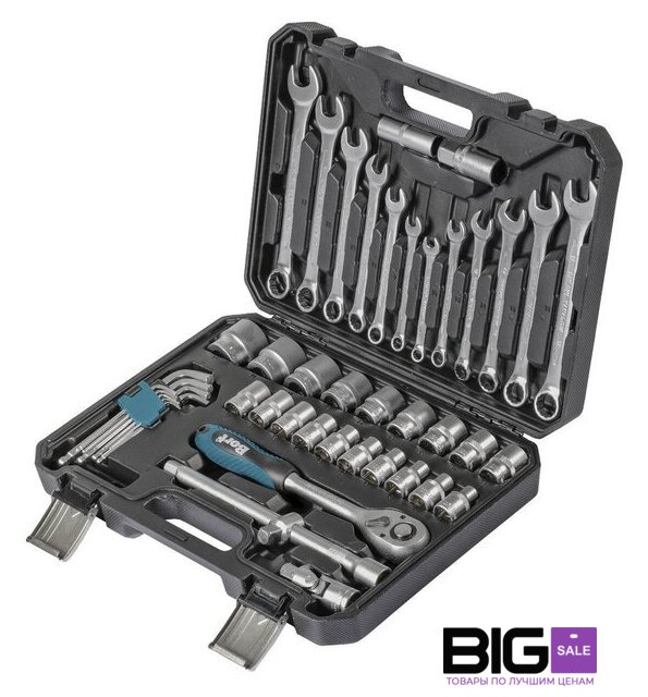 Комплектация | Ключ комбинированный (12 шт) Головки 1/2" (19 шт) Головка торцевая свечная, 1/2" (2 шт) Шарнир карданный 1/2 (1 шт) Удлинитель 1/2":250 мм (1 шт) Адаптер 1/2” (1 шт) Ключ шестигранный (9 шт) Рукоятка с трещеткой квадрат 1/2 (1 шт) Кейс (1 шт) |