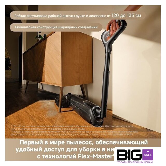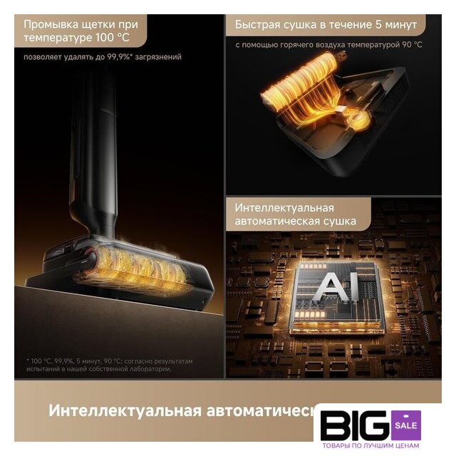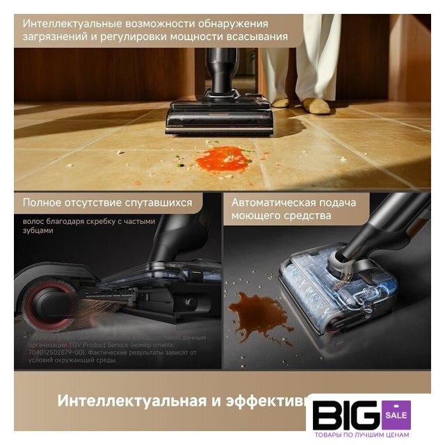 | Функциональные особенности | всасывание жидкостей, дисплей, автоматическая мойка швабры, автоматическая сушка швабры, дозатор для моющего средства |